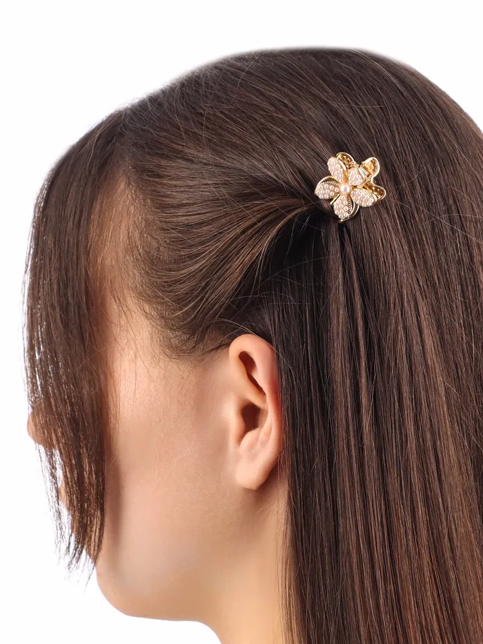 Добавьте изысканный акцент к вашему образу! Золотистый мини-зажим для волос в форме цветка – это элегантный аксессуар, который подчеркнёт вашу женственность и стиль. Он идеально подойдет как для девушки, так и для женщины, желающей добавить немного блеска своему внешнему виду.