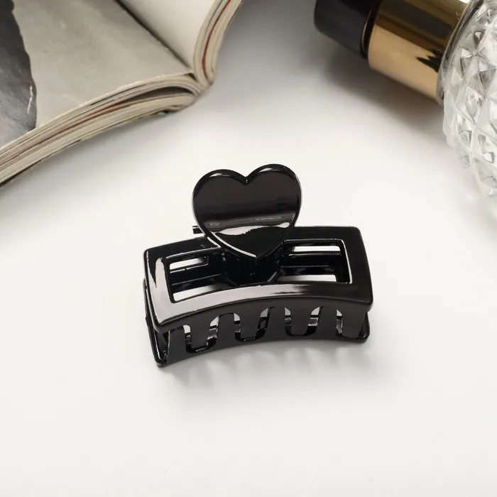 Крабик для волос «Маленькая классика», сердце, 4 см, чёрный