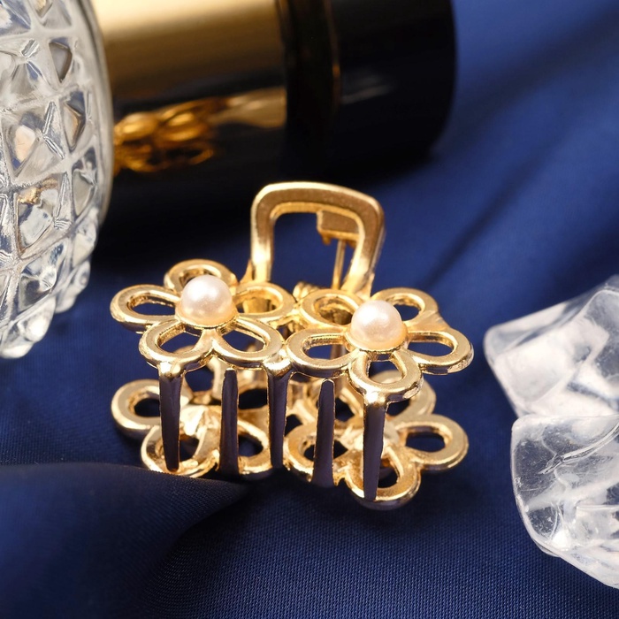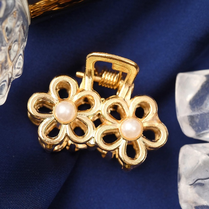 Крабик для волос «Маргарита», ромашки жемчуг, 2.5 см, золото — Характеристики