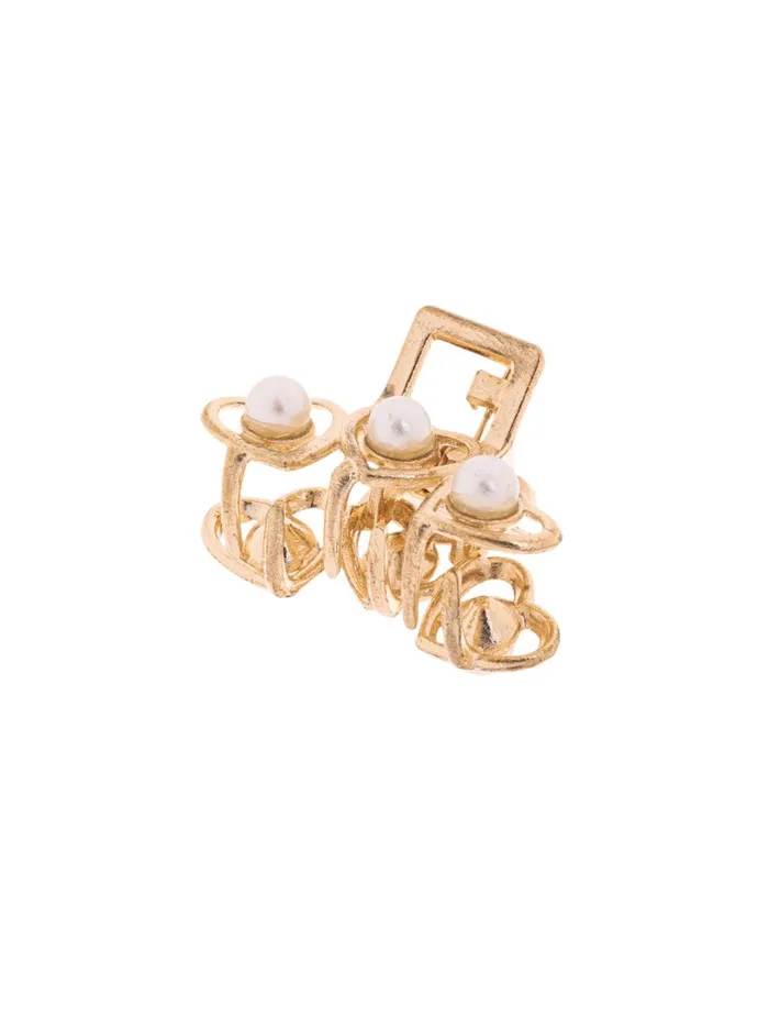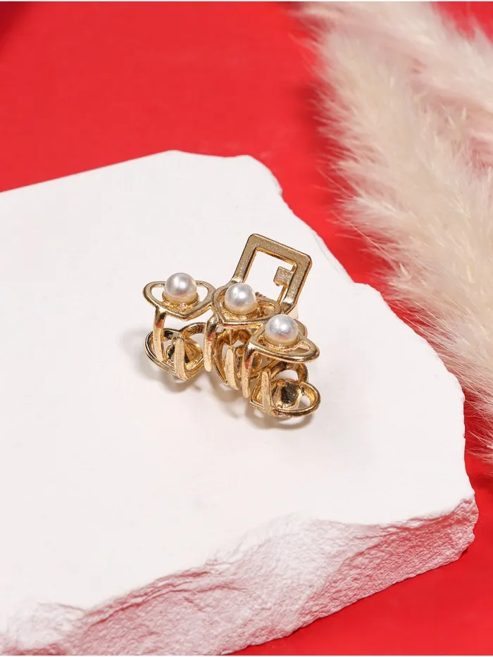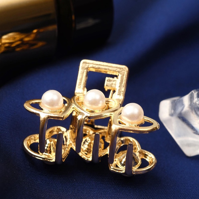 Крабик для волос «Маргарита», сердечки жемчуг, 3 см, золото — Характеристики