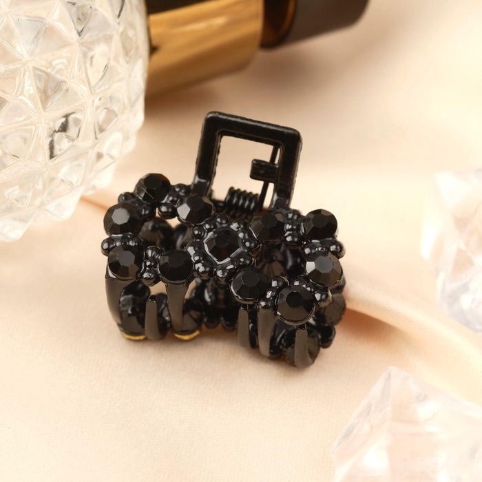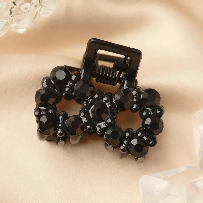 Крабик для волос «Скарлетт», завитки крупный страз, 9 см, чёрный