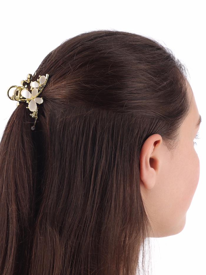 Элегантный и изысканный, краб «Мэнди» предназначен для стильных женщин, которые ценят красоту и функциональность в любом аксессуаре. Этот металлический аксессуар прекрасно сочетается с любым образом, добавляя нотку роскоши благодаря своим стеклянным и пластиковым элементам.