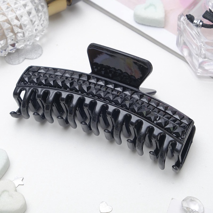 Крабик для волос «Ночка», два ряда страз, 11.5 см, чёрный
