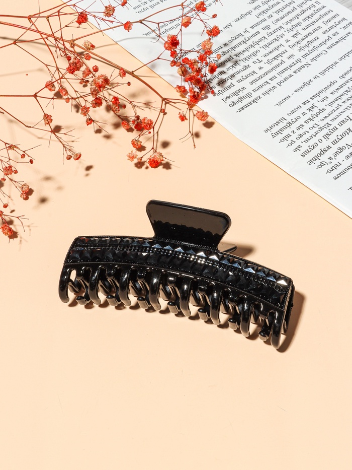 Создайте надежную фиксацию прически! Крабик для волос с двумя рядами страз, 11,5 см, черный – это аксессуар для закрепления волос, сочетающий практичность и стиль. Его длина и дизайн позволяют удерживать как тонкие, так и объемные прически, при этом добавляя блеска и элегантности образу.