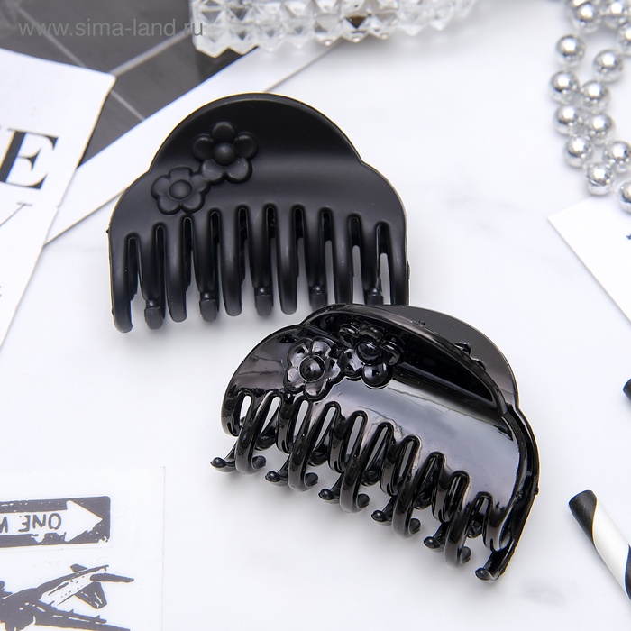 Крабик для волос «Ночка», два цветка, 6.8 см, матовый и глянец, МИКС — Характеристики