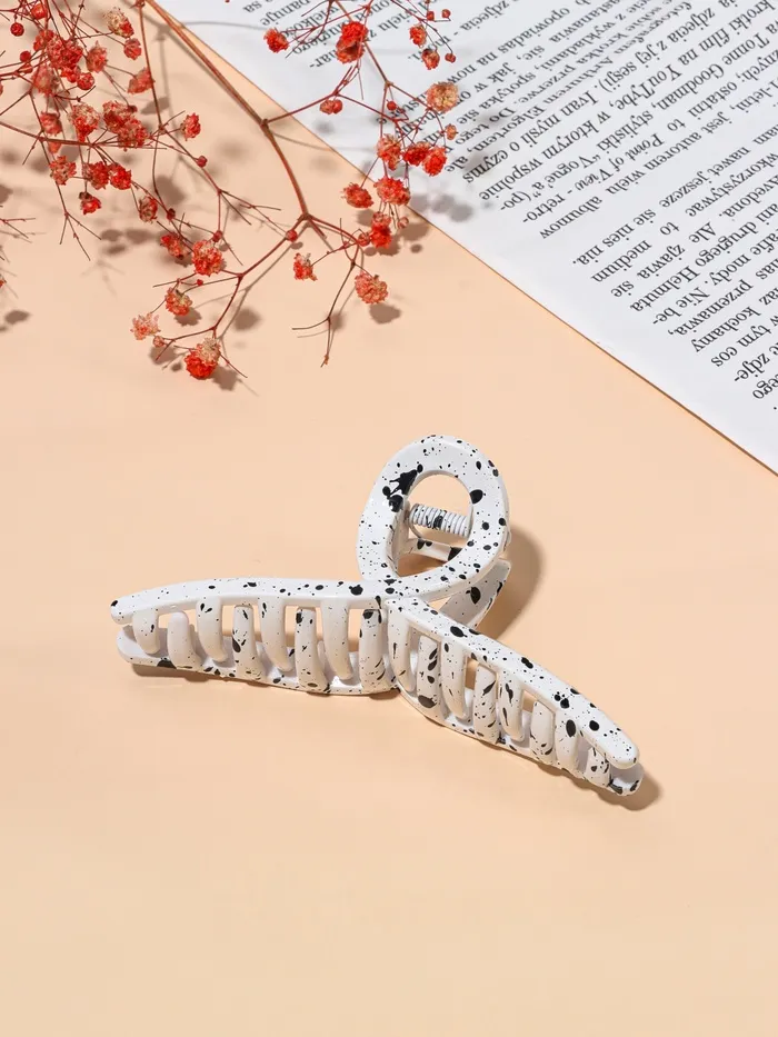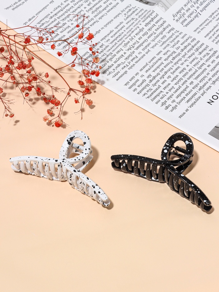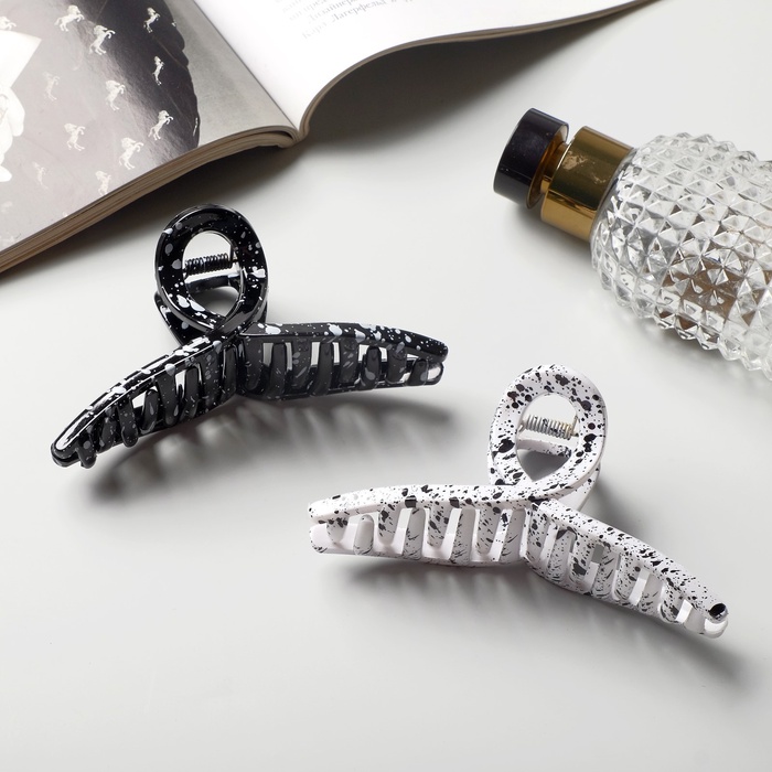 Крабик для волос «Пелагея», петля, 10 см, белый, чёрный