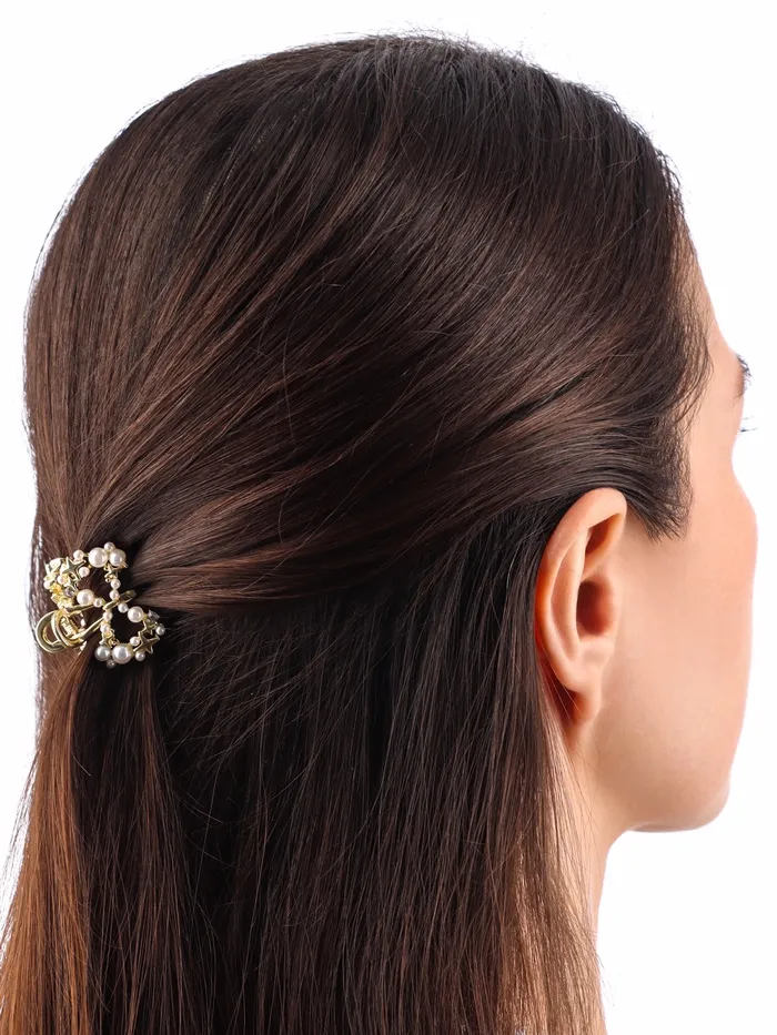 Изящный золотистый краб для волос станет вашим неизменным спутником, добавляющим стиль и удобство в повседневный образ. Идеально подходящий и девочкам, и женщинам, этот аксессуар объединил в себе красоту и функциональность. Благодаря благородному сочетанию металла, стекла и пластика, он не только надежный, но и элегантный.