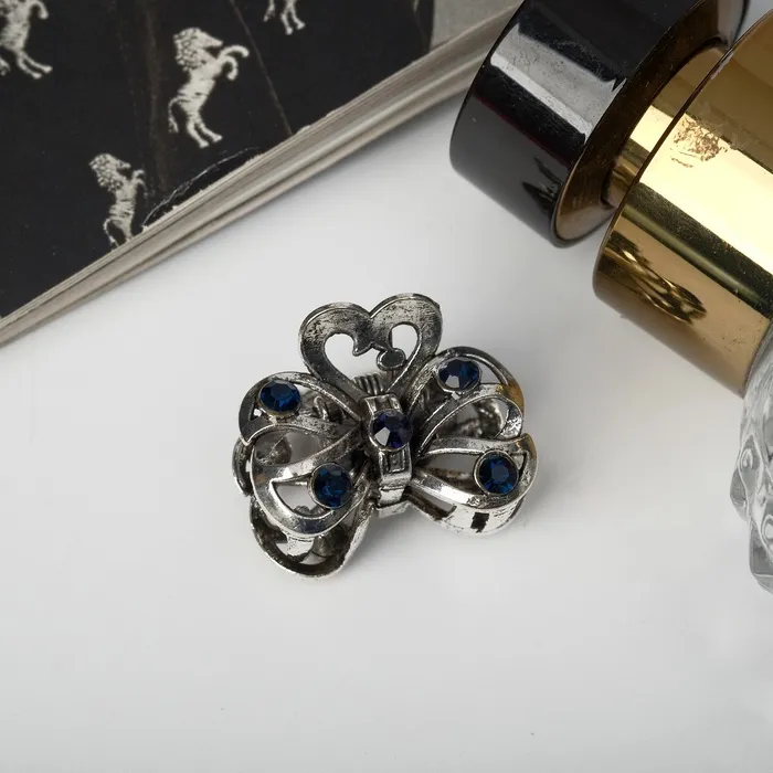 Крабик для волос «Синий туман», бантик, 2.3 см, серебро — Характеристики