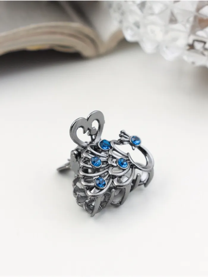 Крабик для волос «Синий туман», павлин, 2.5 см, серебро — Характеристики