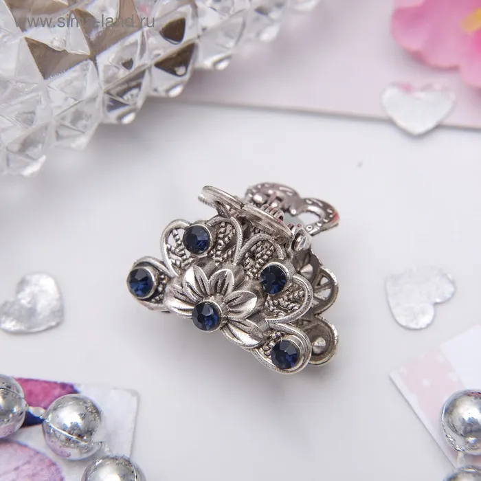Крабик для волос «Синий туман», цветок, 2.3 см, серебро — Характеристики