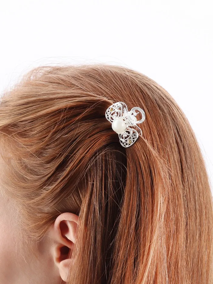 Подчеркни свою элегантность и стиль! Серебристый жемчужный краб для волос в виде бантика — это изысканный аксессуар, добавляющий нотку шика в каждый образ. Идеален для девочек и женщин, стремящихся к элегантности в причёсках.