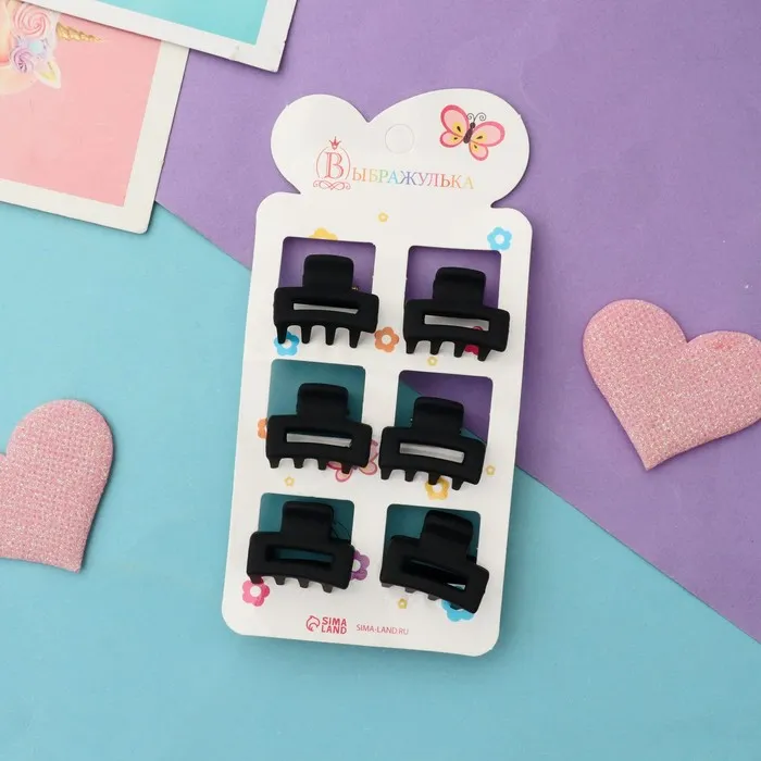 Крабик для волос«Ариэлла», набор 6 шт., прямой, 2.5 см, чёрный — Характеристики