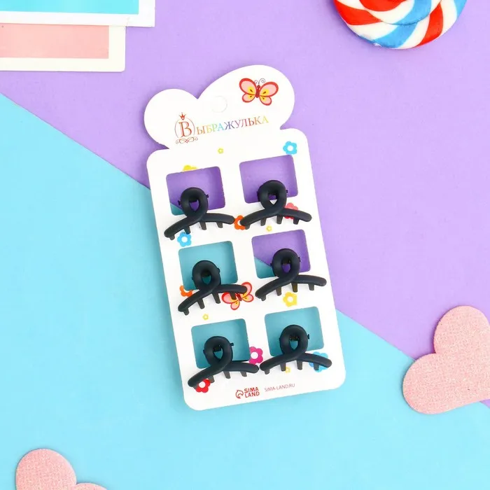 Крабик для волос«Ариэлла», набор 6 шт., зубчики дуга, 2.5 см, чёрный — Характеристики