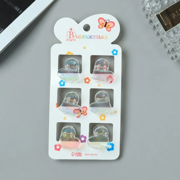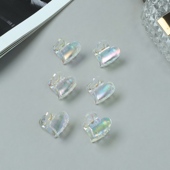 Крабик для волос«Аванти», набор 6 шт., сердце, 2 см, прозрачный