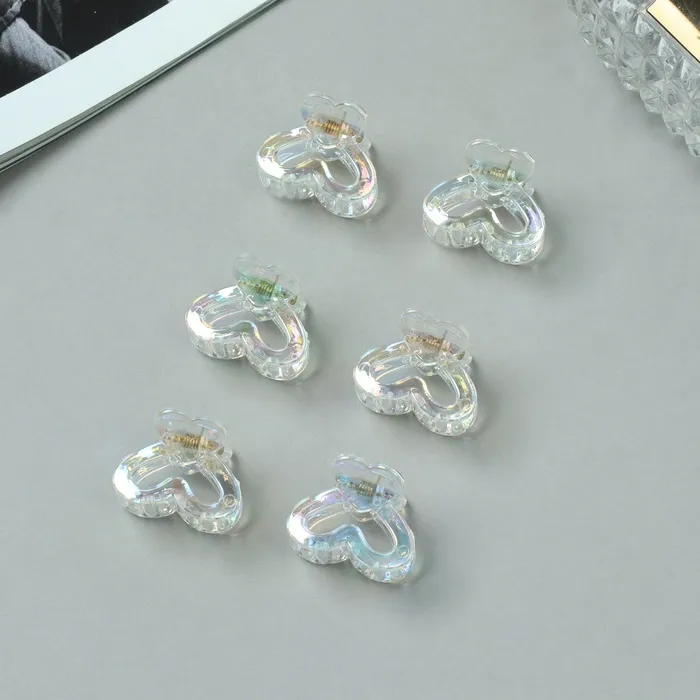 Крабик для волос«Аванти», набор 6 шт., сердце двойное, 2.5 см, прозрачный