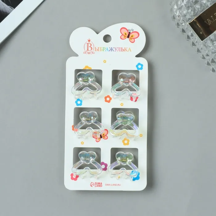 Крабик для волос«Аванти», набор 6 шт., сердце двойное, 2.5 см, прозрачный — Характеристики