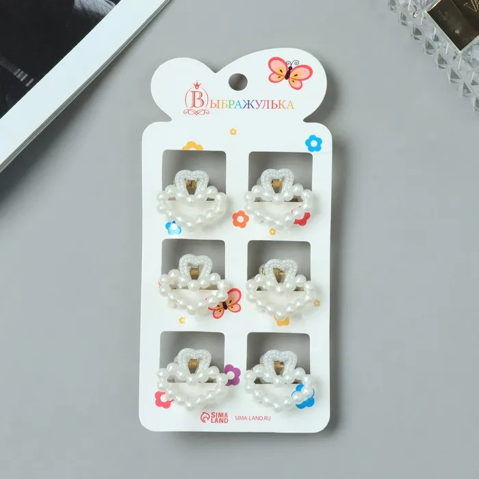 Крабики для волос «Авена», сердце, 2.5 см, набор 6 шт., белые — Характеристики