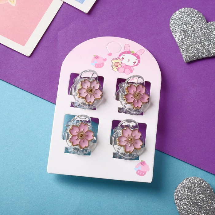 Крабики для волос «Маленькая радость», набор 4 шт., цветочек, 2 см, розовые