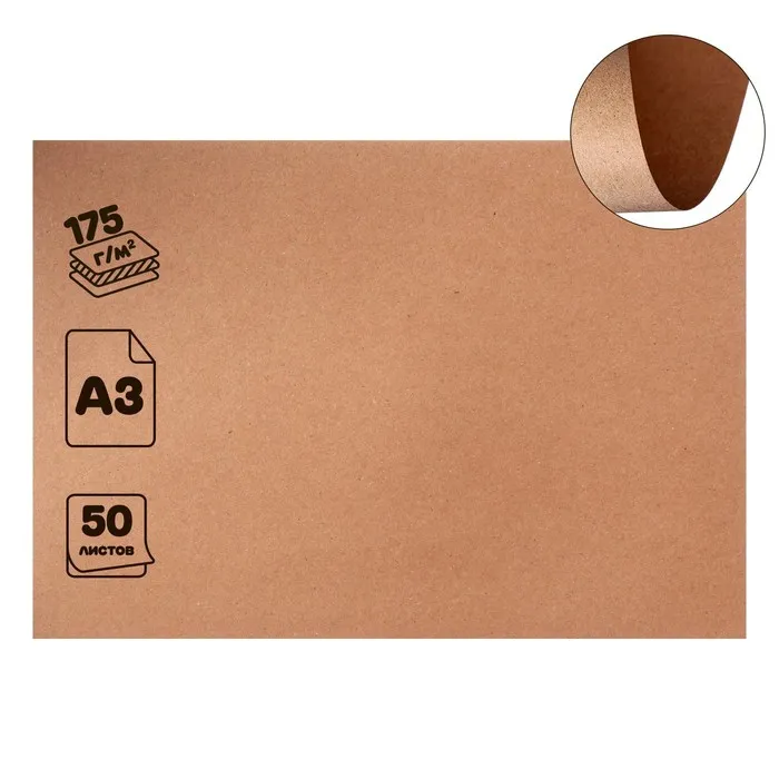 Крафт-бумага для рисования, графики и эскизов А3, 50 листов (300х420 мм), 175 г/м², коричневая/серая — Характеристики