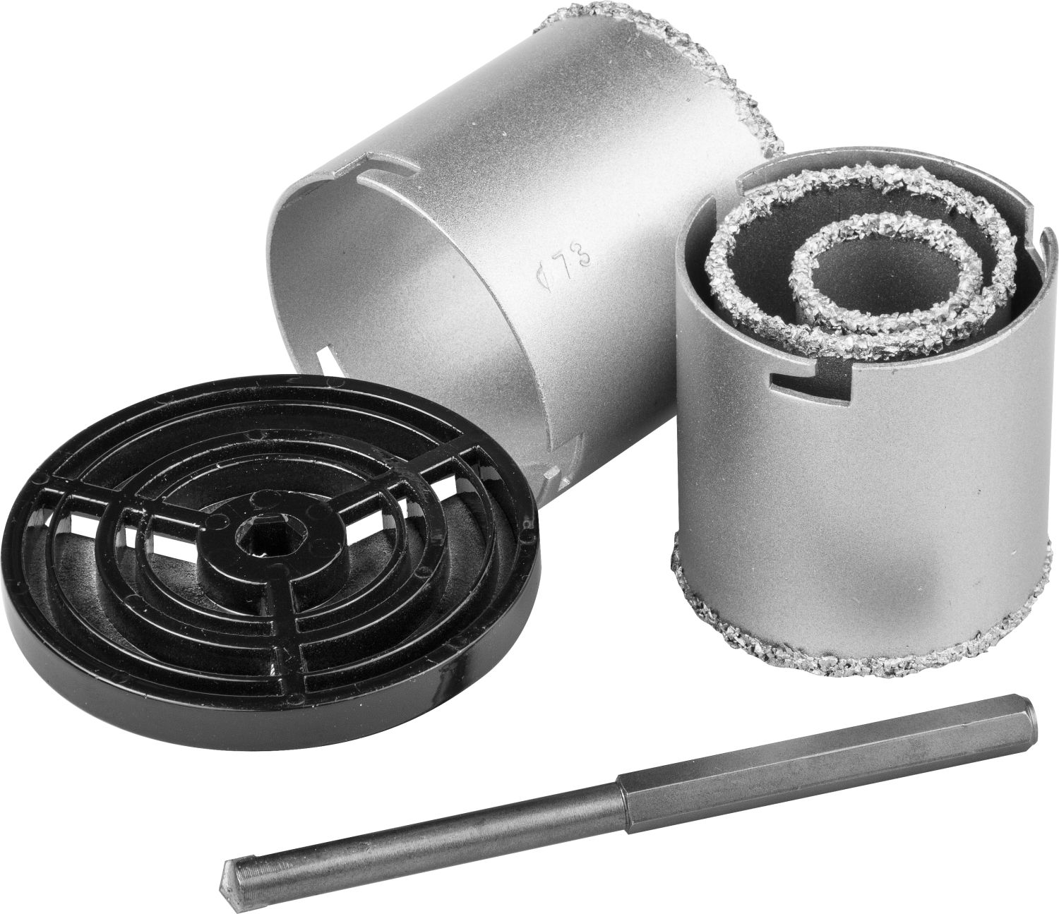 Набор применяется для получения ровных отверстий в облицовочных материалах, а также в ячеистом бетоне, кирпиче и гипсокартоне. Используется на дрелях и легких перфораторах в режиме безударного сверления.