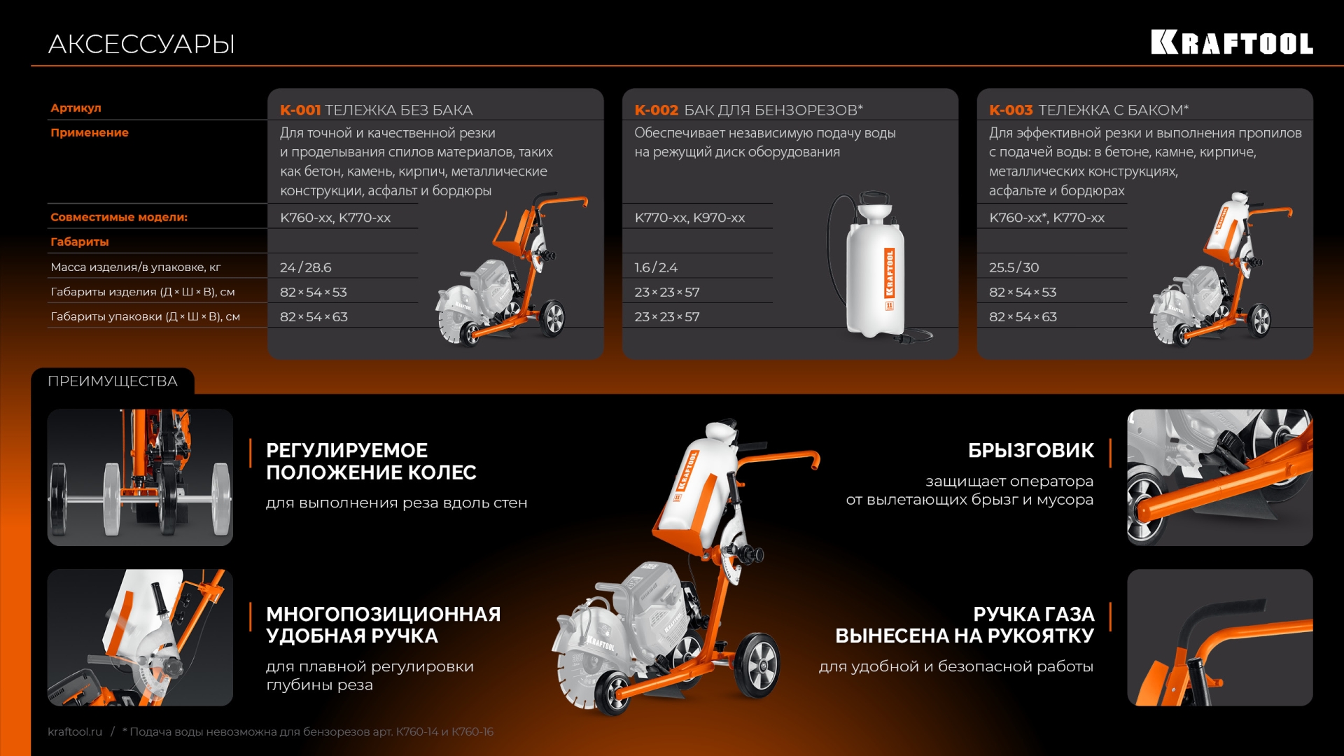 Для всех бензорезов Kraftool. Бак обеспечивает независимую подачу воды на режущий диск оборудования.