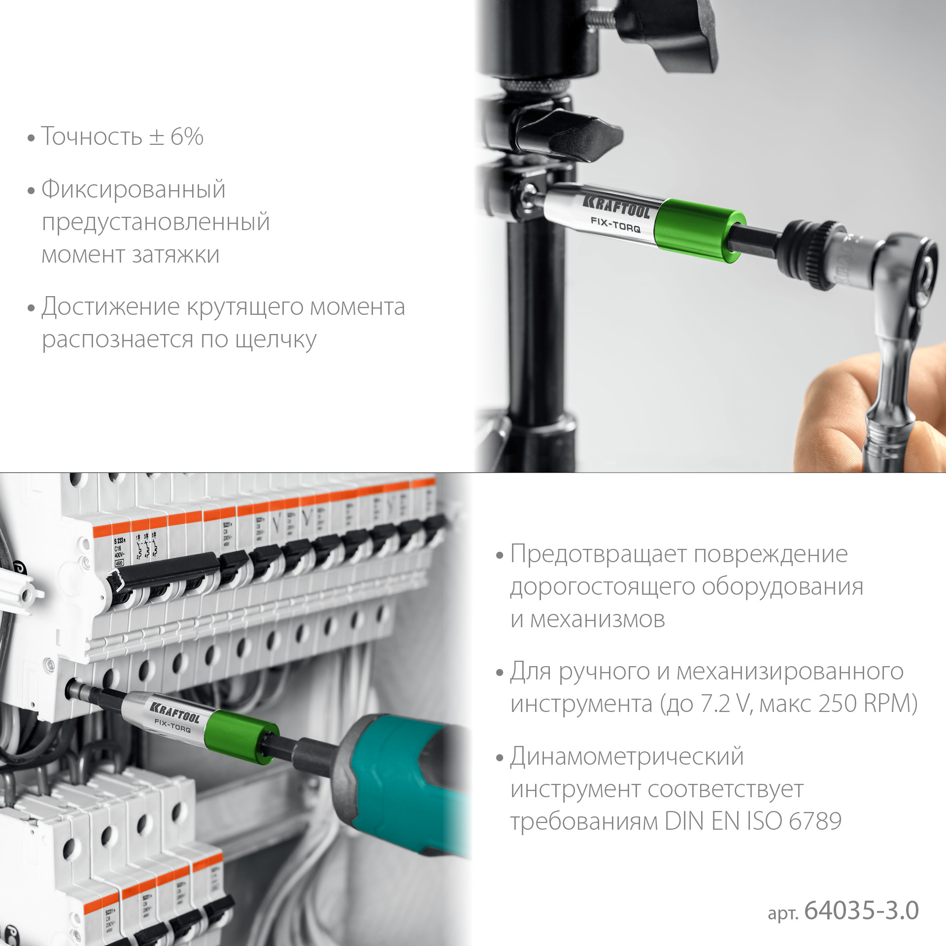 Профессиональный динамометрический инструмент с предустановленным значением крутящего момента для бит с хвостовиком 1/4″ (E 6.3). Разработан специально для ручного и механизированного инструмента (до 7.2V, макс 250 RPM).