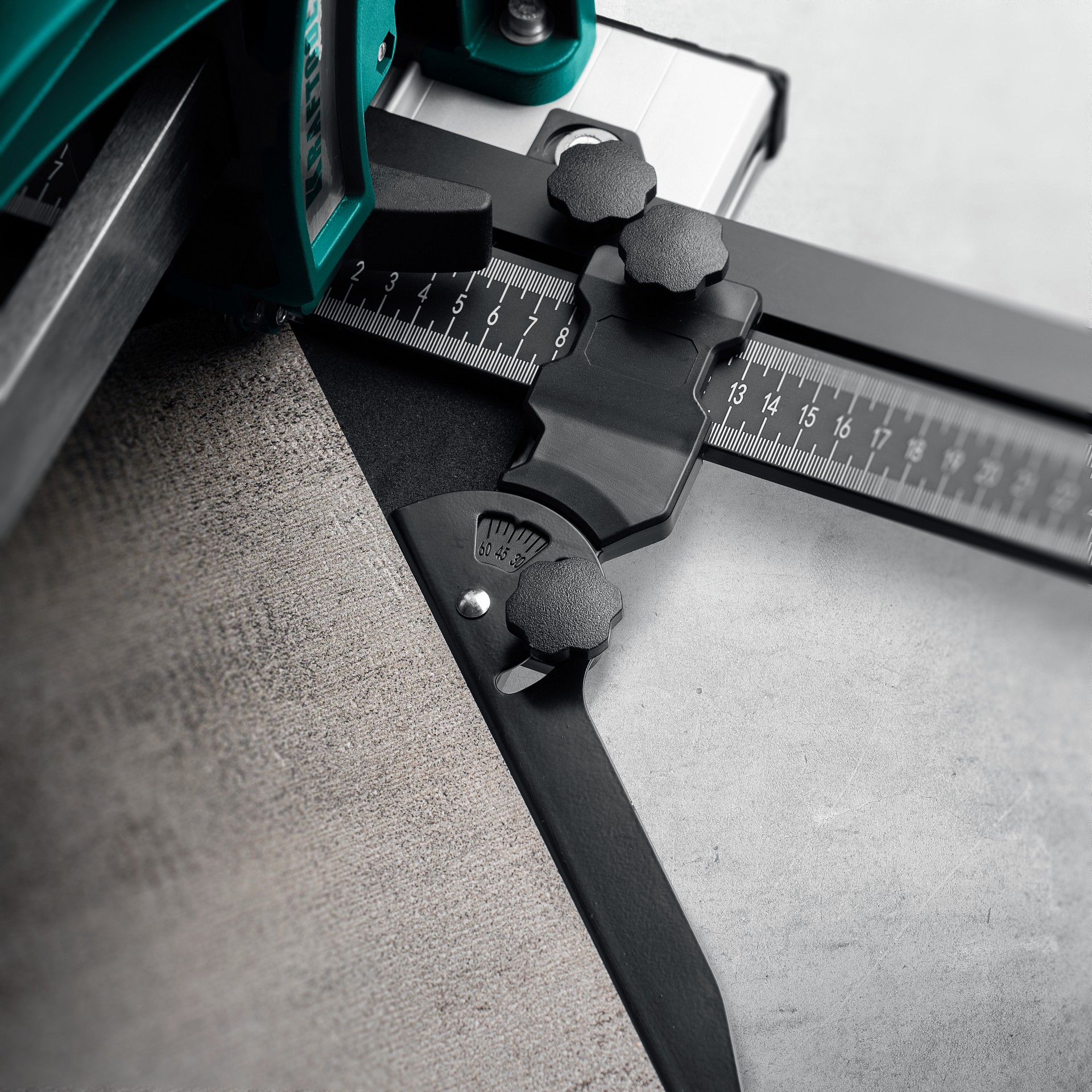 Профессиональный плиткорез GRAND подходит для резки любой плитки, толщиной до 16мм. Его режущий элемент рассчитан на 10 километров реза без замены. Плавный ход каретке обеспечивают 10 подшипников, скрытых в корпусе. Цельный стальной рельс прямоугольного сечения позволяет каретке надежно перемещаться, не застревая даже при самых сильных нагрузках. Боковые опоры можно разместить в любом удобном для Вас положении, а линейка с угломером позволят сделать самый точный рез. Алюминиевое основание облегчает конструкцию, а фиксатор каретки позволяет безопасно перевозить плиткорез.