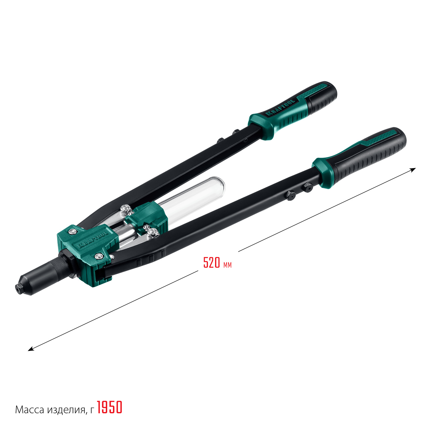 Заклепочник KRAFTOOL рычажный выдерживает большие нагрузки и предназначен для установки заклепок из любых видов материалов при профессиональных и индустриальных работах.