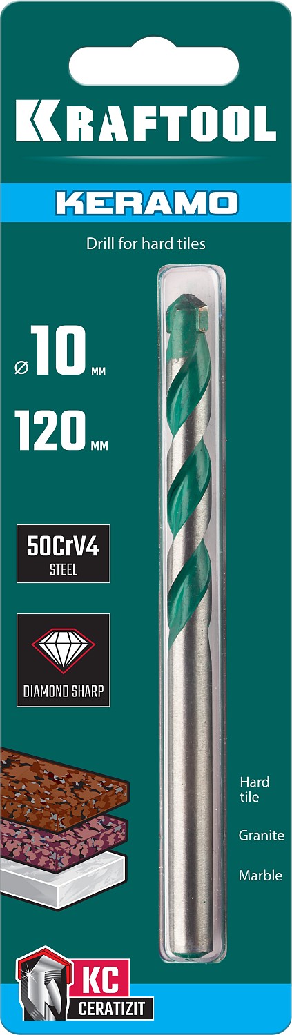 Благодаря специальной твердосплавной пластине и алмазной заточке режущих кромок сверла KERAMO уверенно проходят через керамогранит, мрамор, гранит и прочие твердые материалы.