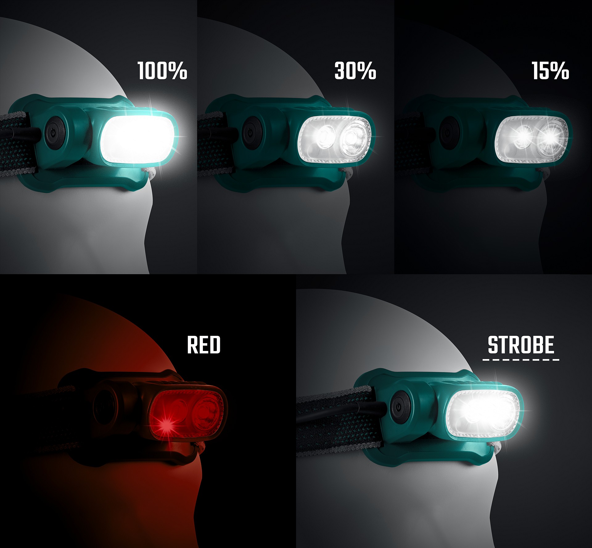 Режимы работы: 5 режимов: 500лм, 150лм, 70лм, 10лм(красный), мерцание(белый)