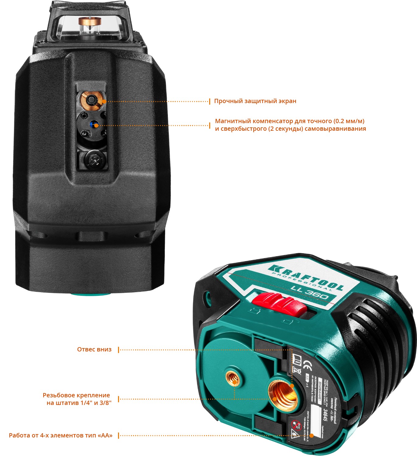 - Функция самовыравнивания устраняет необходимость настройки, гарантирует максимальную точность при разметке.