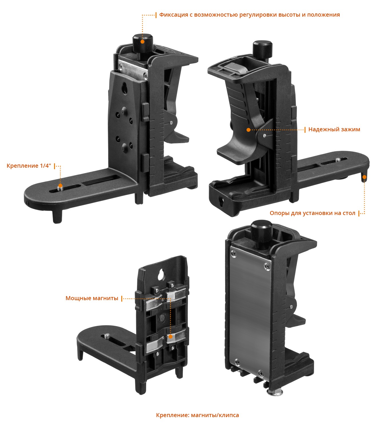 - Диапазон компенсирования ± 4° для установки на неровную поверхность.