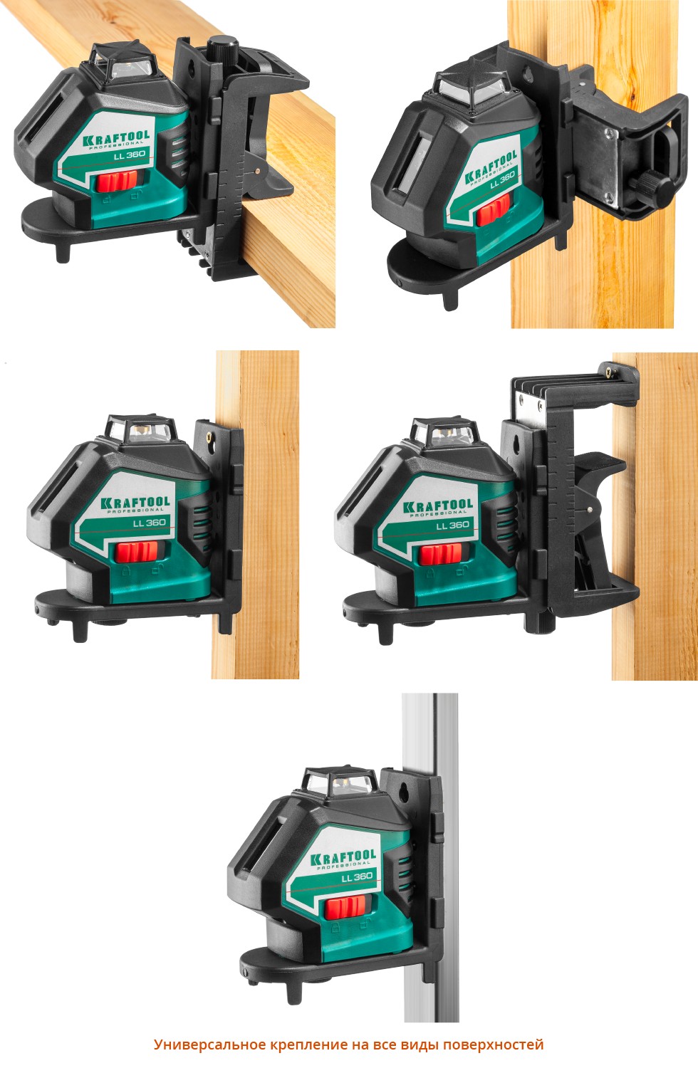 - 3 режима проецирования линий: горизонтальная линия с развёрткой 360°. вертикальный луч, отвес.