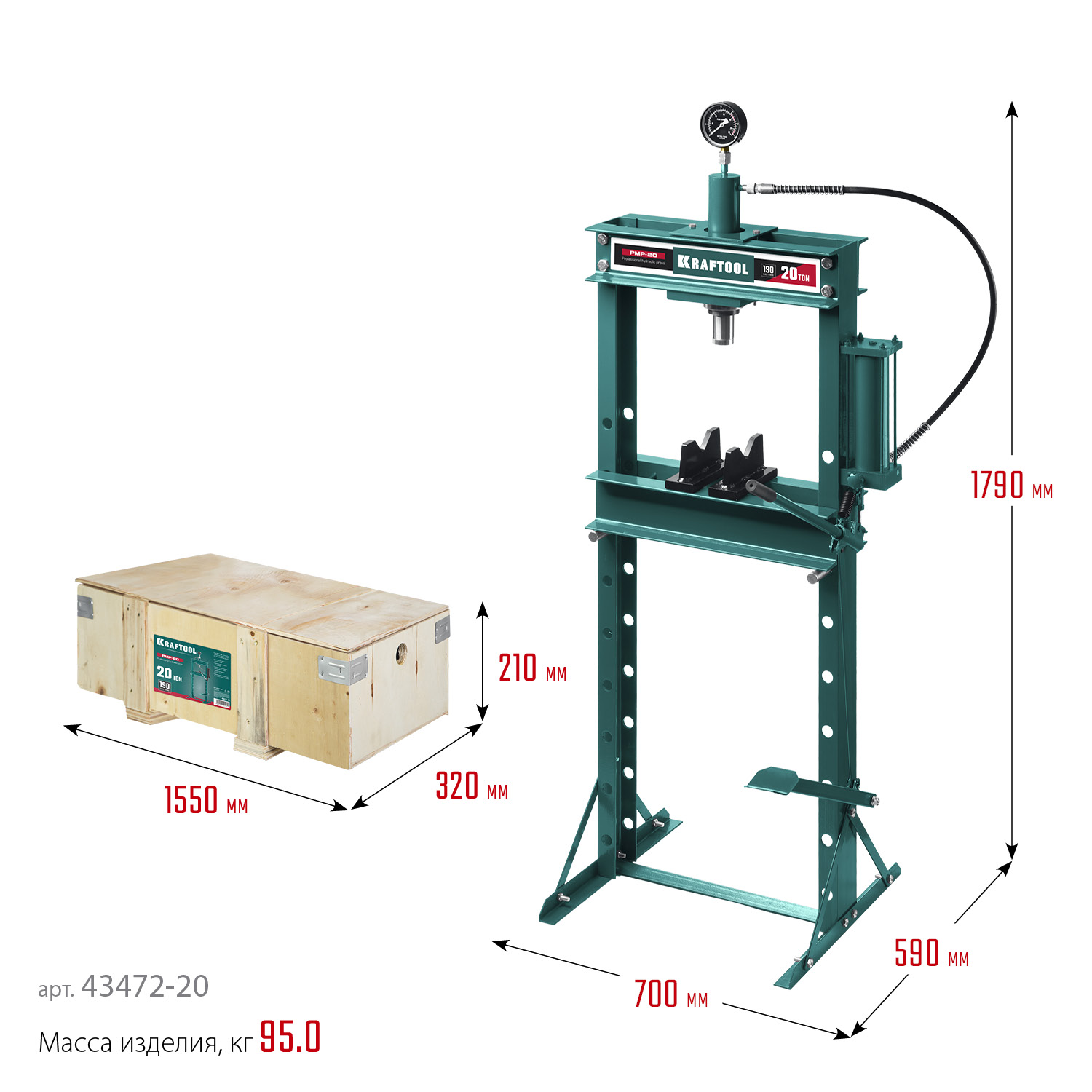 Пресс KRAFTOOL - мощный инструмент для запрессовки деталей. Отличается прочной металлической конструкцией. Широкое Н-образное основание надежно крепится к полу анкерными болтами. Большой рабочий диапазон. Манометр для контроля давления