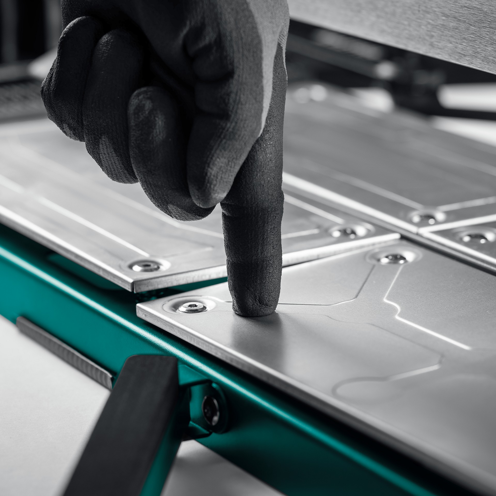 Профессиональный плиткорез ULTRA подходит для резки любой плитки толщиной до 16 мм. Его режущий элемент рассчитан на 10 километров реза без замены. Плавный ход каретке обеспечивают 10 подшипников, спрятанных в корпусе. Цельный стальной рельс прямоугольного сечения позволяет каретке надежно перемещаться, не застревая даже при самых сильных нагрузках. Боковые опоры надежно закрепляются на основании и поддерживают плитку, не позволяя ей соскользнуть. Линейка с угломером позволяет сделать самый точный рез. Плавающее основание является ультимативным решением для защиты плитки от ухода от линии реза во время прохождения режущего элемента по плитке и растрескивания во время разделения. Для удобной транспортировки плиткореза предусмотрены колесики и ручка в противоположных частях основания, а фиксатор на каретке позволяет безопасно транспортировать плиткорез.