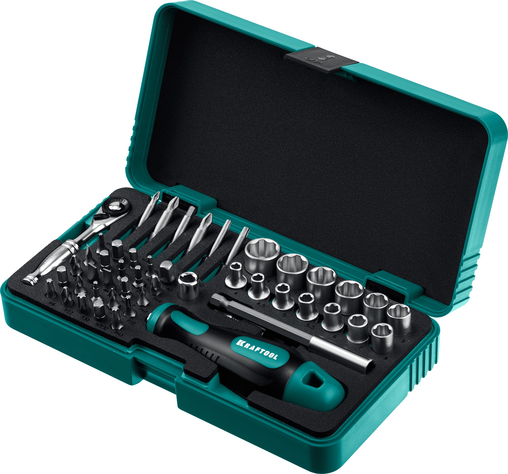 KRAFTOOL X-Drive-49, 49 шт, набор бит и головок с битодержателем и трещоткой (25816)