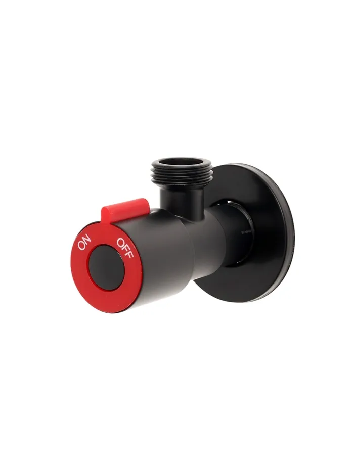 Кран угловой ZEIN engr, 1/2" х 1/2", кран-букса латунь/керамика, нерж.сталь, черный/красный