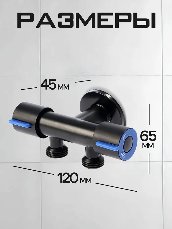 Кран двойной ZEIN engr, 1/2" х 1/2", два вентиля, кран-букса керамика, нерж. сталь, черный — Характеристики