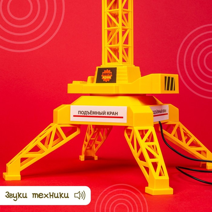 «Мегакран» на дистанционном управлении быстро реагирует на команды: с помощью пульта ребёнок сможет поднимать и отпускать груз, а также поворачивать стрелу крана. Звуки работающей строительной техники сделают игру более реалистичной и захватывающей.