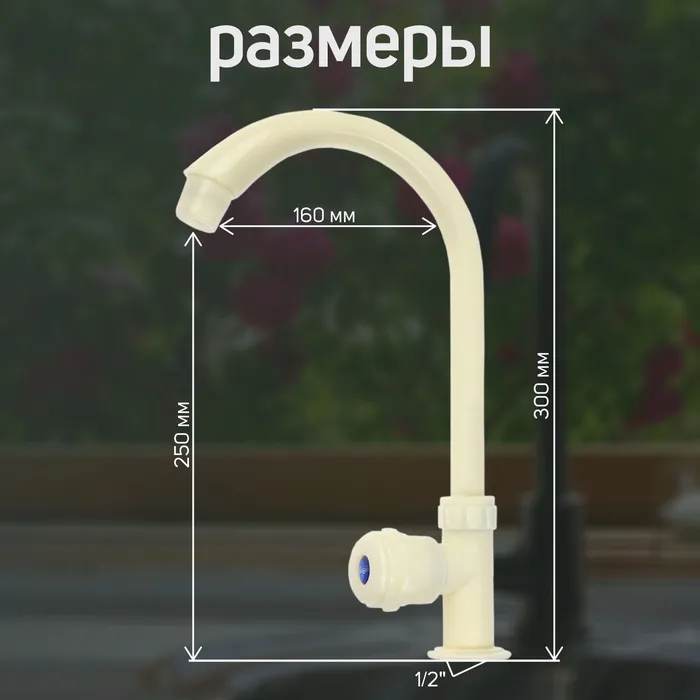 Кран на одну воду ZEIN Z2018, круглая ручка, пластик, высокий R-образный излив, цвет «рис» — Характеристики
