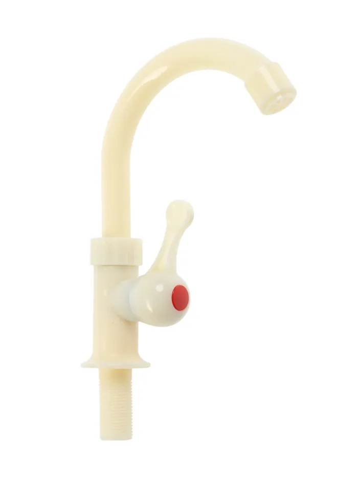 Кран на одну воду ZEIN Z2020, плоская ручка, пластик, R-образный излив, цвет «рисовый» — Характеристики