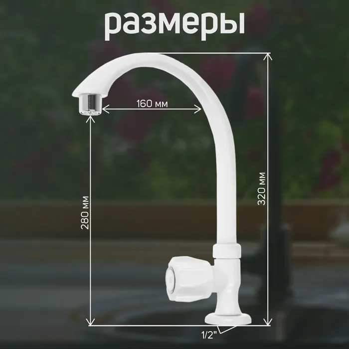 Кран на одну воду ZEIN Z2021, пластик, хромированный аэратор, высокий R-образный излив, белый — Характеристики