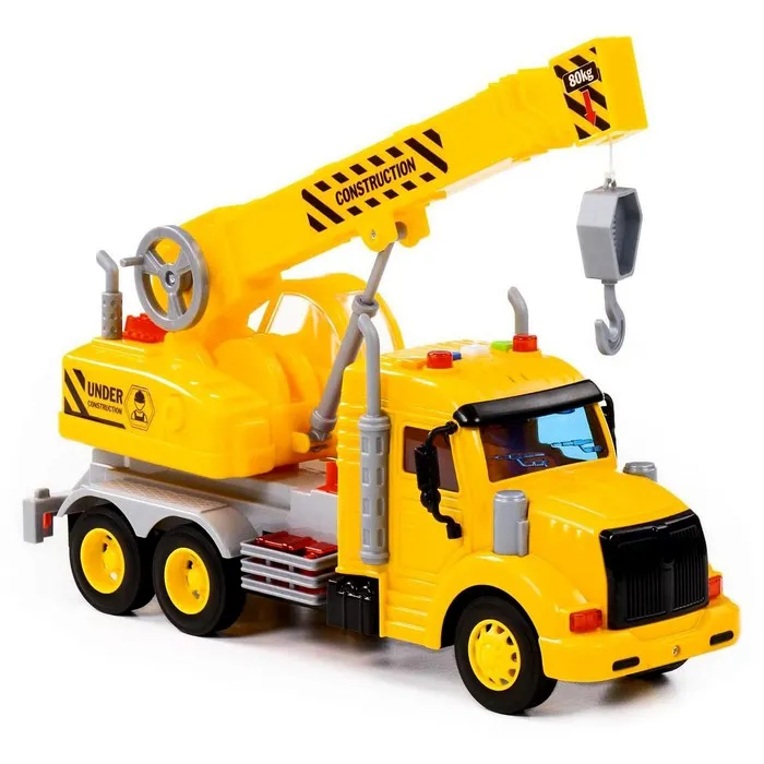 Позвольте вашему ребёнку стать настоящим строителем с инерционным краном «Профи»! Этот яркий и функциональный грузовик подарит часы увлекательных игр, развивая фантазию и моторику.