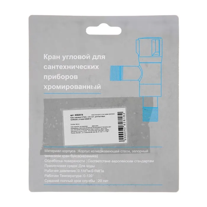 Кран шаровой OTMO, 1/2"x1/2", для бытовых приборов, угловой — Характеристики