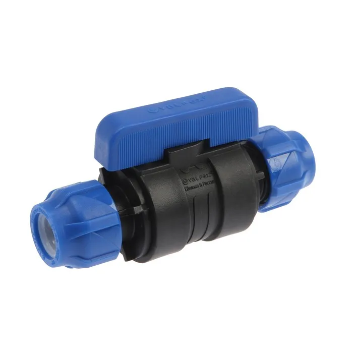 Кран шаровой ПНД Valfex, d=20×20 мм, цанга/цанга, разборный