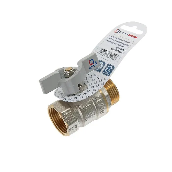 Шаровой кран для воды ¾″ с внутренней/наружной резьбой, ручкой-бабочкой применяется в качестве запорной арматуры на трубопроводах систем питьевого, хозяйственно-бытового и промышленного назначения, холодного, горячего водоснабжения и отопления, сжатого воздуха и жидких углеводородов, а также в трубопроводах, транспортирующих среды, не агрессивные к материалам крана.