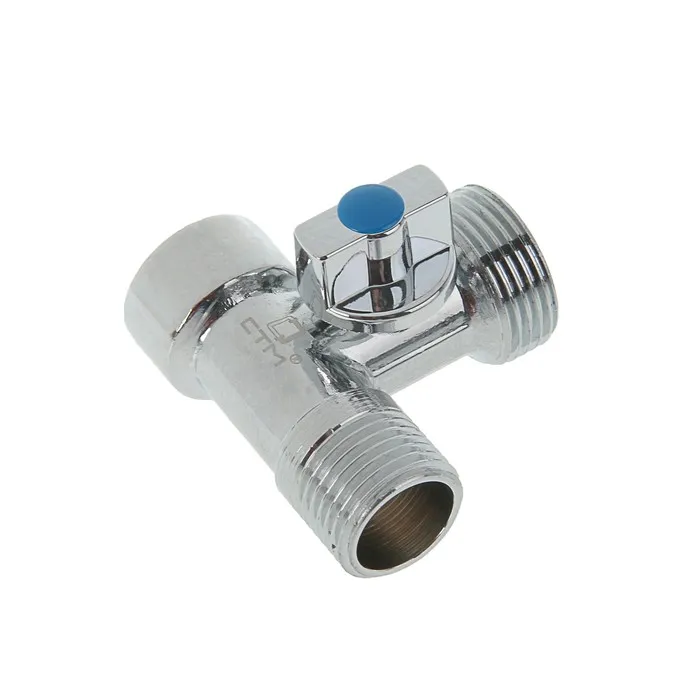 Шаровой кран для бытовых приборов 1/2 × 3/4 ×1/2" г/ш/ш, никелированный применяется для подключения бытовых (стиральные, посудомоечные машины и др.) и сантехнических приборов к трубопроводам хозяйственно-бытового назначения и системе холодного водоснабжения.
