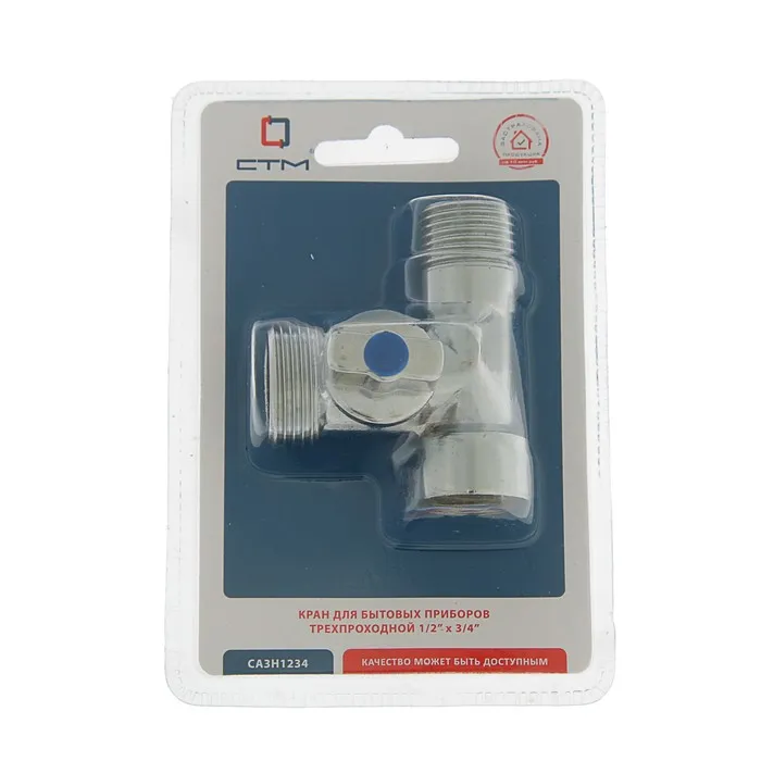 Кран шаровой «СТМ», трехпроходной, 1/2"х3/4"х1/2", для бытовых приборов, хромированный — Характеристики