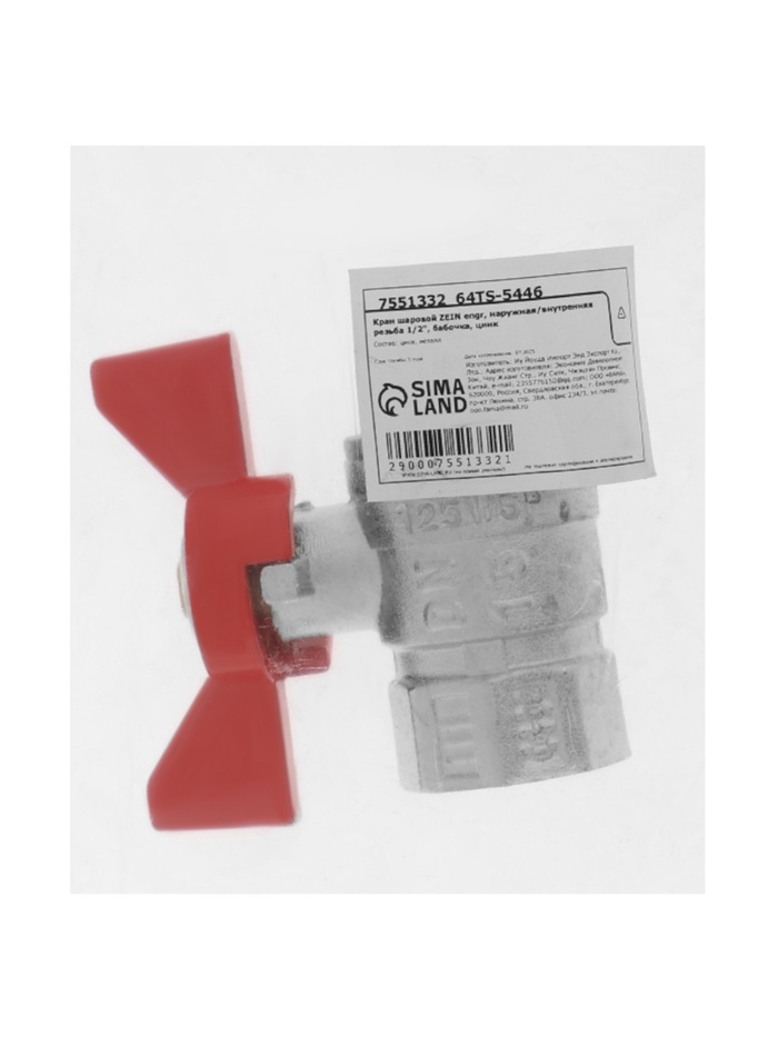 Кран шаровой ZEIN engr, наружная/внутренняя резьба 1/2", бабочка, цинк — Характеристики