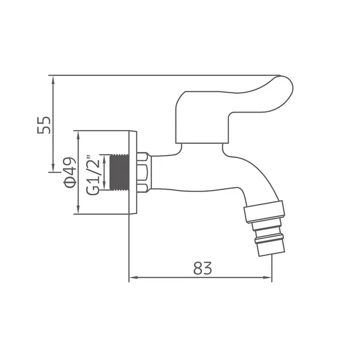Кран водоразборный со штуцером ZEIN, 1/2", с плоской ручкой, PP, кран-букса, хром